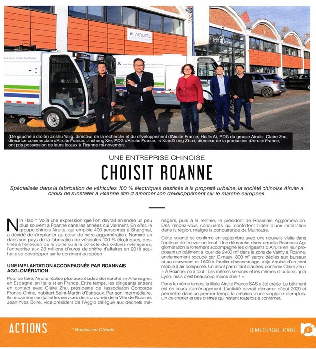 Airuite France is a French wholly-owned subsidiary of Anhui airuite new energy Special Purpose Vehicle Co., Ltd. (hereinafter referred to as airuite). It is a comprehensive company integrating R & D, production, sales and leasing of environmental protection products such as new energy vehicles, sweepers, garbage trucks, washing machines and storage vehicles.