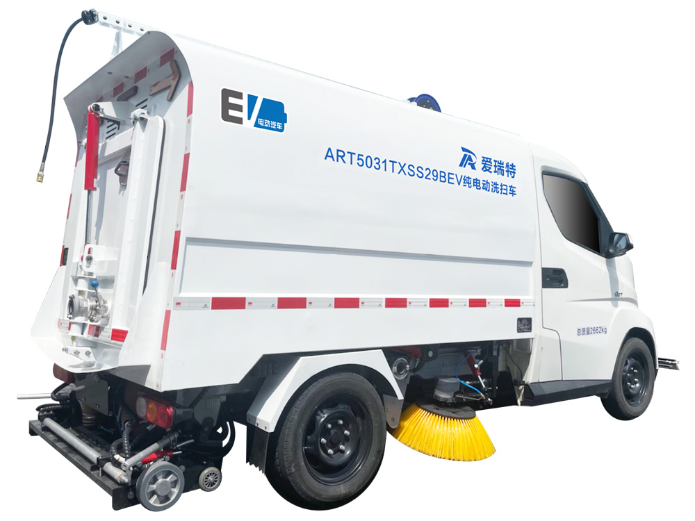 Art5031txss29bev pure electric cleaning and sweeping vehicle is mainly used for general sweeping of main roads, non motorized lanes, back streets and alleys. It integrates functions such as sweeping and high-pressure washing, and can quickly clean fallen leaves, stones, sand dust, white garbage, etc., and dump garbage.