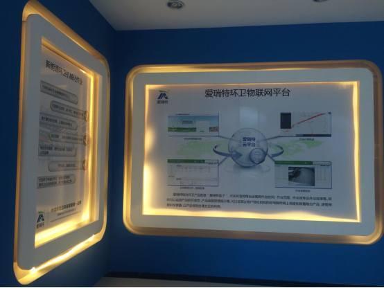 愛瑞特在發展過程中不斷推陳出新,以愛瑞特新能源環衛車為載體,將互聯網與傳統產品相結合,打造愛瑞特環衛物聯網管理平臺。通過愛瑞特環衛物聯網管理平臺、云計算、大數據收集,整合產品全生命周期數據,將公司生產、銷售的新能源環衛車輛,加裝“愛瑞特盒子”。通過對每輛環衛作業車的行程軌跡、視頻抓拍;讓用戶能夠及時掌控每輛環衛車的作業效率與效果;實現管理考核的自動統計與獎罰;通過平臺后臺,為公司內部提供產品設計研發、故障判斷、遠程維護、質量診斷、售后服務等決策信息。與此同時,環衛物聯網展廳也作為配套設施成功亮相。