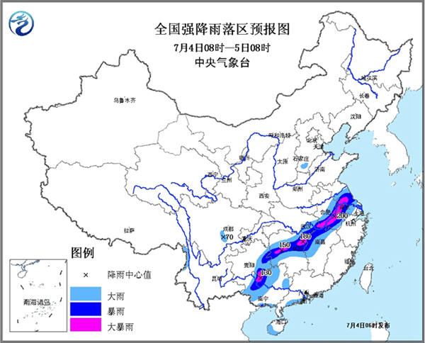 7月4日,我國(guó)南方地區(qū)持續(xù)強(qiáng)降水天氣短暫停歇,抗洪搶險(xiǎn)工作迎來“黃金大半天”。但是搶險(xiǎn)前景仍不容樂觀。據(jù)中央氣象臺(tái)消息,預(yù)計(jì)4日08時(shí)至5日08時(shí),安徽中南部、江蘇中南部、湖北東南部、江西西北部、湖南中部和東北部、貴州東南部、廣西西北部和南部沿海等地有暴雨,其中,安徽和江蘇兩省沿江地區(qū)、湖南東北部及中部、廣西西北部等地的部分地區(qū)有大暴雨(100~200毫米);上述地區(qū)伴有短時(shí)強(qiáng)降水和雷暴大風(fēng)等強(qiáng)對(duì)流天氣,最大小時(shí)雨強(qiáng)60~80毫米。南方大部地區(qū)仍然處于暴雨紅色預(yù)警中。